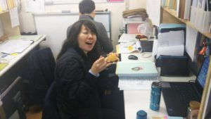 専務と部長も一緒に応援に