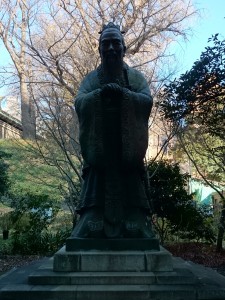 近くで見守る孔子の像
