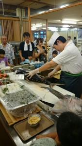 目の前で解体しながら説明する板前さんの声に 食欲が、、、