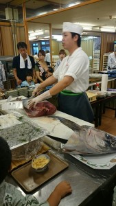 今日の宿ではマグロの解体ショウーが