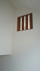内部の階段との壁に明かりとりの窓を