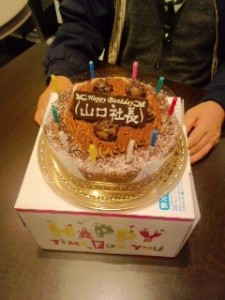 誕生日に、問屋一同からごらんのように誕生日のケーキが。65歳の高齢者となると大事にしてくれるのかな。それにしてもサプライズです。