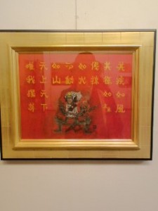 真っ赤な赤をバックに信玄の雄姿が作品の真ん中で人の心に響きますね。