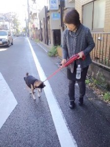 ?こちらはゲンサマと上官の朝の散歩風景。寒いので上官手作りの