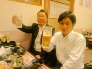 息子が段取りして、キタセツ社長の事務所へイベントの来客数は東京1番の秘密を聞きに訪問。彼とは顔をなじみで、後継者としての息子の入社に喜んでいました。中身の濃い話の後は近くの居酒屋で2次会
