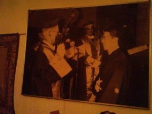 正面の壁には写真が。実は何十年前にマスターがフランスのワイン業者から