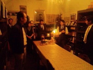 そして自慢のワインの蔵を案内してくれました。店の入口そばの階段を