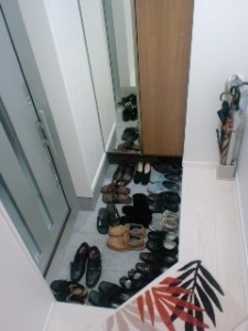 ごらんのように玄関は靴で一杯。
