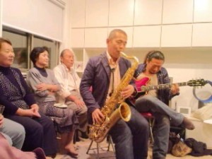 そしてお祝いにプロのJAZZ演奏者を呼びました。 実は小生、サックスを昔習ってました。