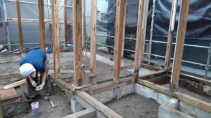 現場での木材の仕口の加工するときを懐かしい音がひびきます。