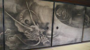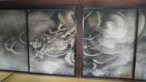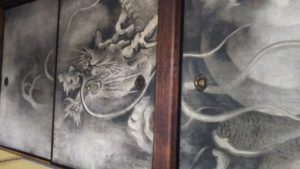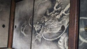 襖一面に描かれた龍に囲まれて