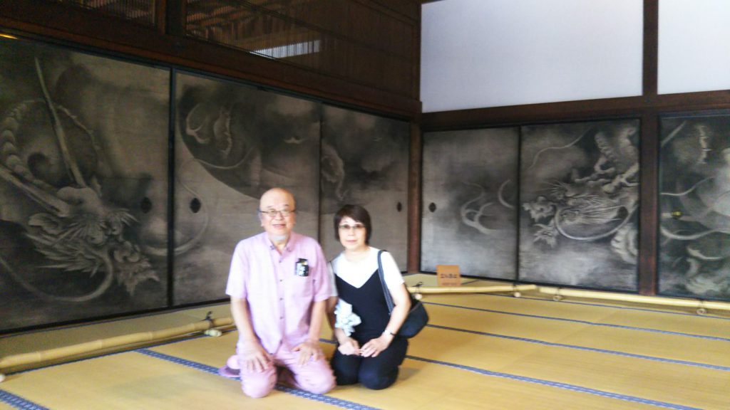 襖一面に描かれた龍に囲まれて